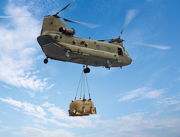Our 1,000 gallon / 3,785 Liter carbon fiber composite Expeditionary Fuel Tank (EFT) delivers high-volume liquid cargo in a lightweight, durable solution. JP-8 and petroleum compatible (among other liquids), the EFT is an ideal solution for multiple mission needs with quick installation and removal times and various ground handling features. This tank does not modify the aircraft, therefore certification is not required.